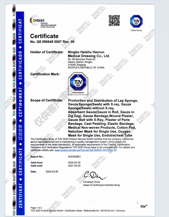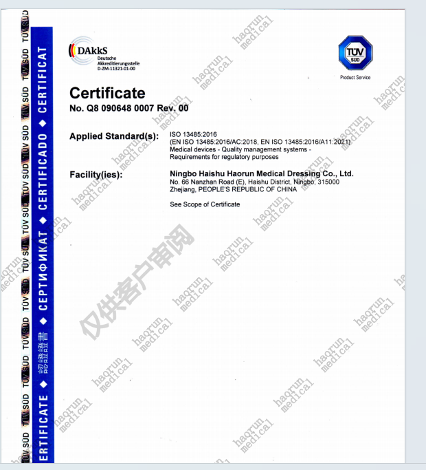 Haorun Medical از ممیزی معتبر TÜV استقبال می کند، که استاندارد بالایی برای کیفیت صادرات تجهیزات پزشکی با استانداردهای بین المللی تعیین می کند.